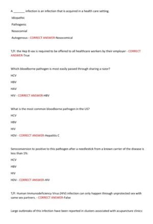 100 Practice Questions and Answers for CNT Exam Prep | Clean Needle Technique – CNT exam Answered Practice Questions Latest