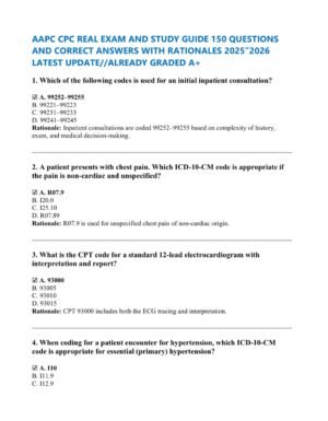 AAPC CPC REAL EXAM AND STUDY GUIDE 150 QUESTIONS AND CORRECT ANSWERS WITH RATIONALES 2025”2026 LATEST UPDATE//ALREADY GRADED A+