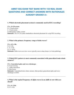 ABRET EEG EXAM TEST BANK WITH 150 REAL EXAM QUESTIONS AND CORRECT ANSWERS WITH RATIONALES ALREADY GRADED A+