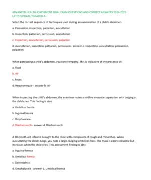 ADVANCED HEALTH ASSESSMENT FINAL EXAM QUESTIONS AND CORRECT ANSWERS 2024-2025 LATESTUPDATE//GRADED A+