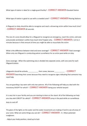 A 120-question practice test with correct answers and explanations, updated to the latest Red Cross lifeguarding curriculum. Covers rescues, CPR/AED, first aid, spinal care, and legal responsibilities. Perfect for exam prep and refresher training.