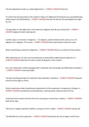 The Automotive Technician Exam 944 Prep Guide (2025–2026 Edition) provides 500 actual exam questions with 100% correct answers along with a comprehensive study guide. This latest release is designed to help candidates master essential automotive systems, diagnostics, repairs, and maintenance procedures. With verified solutions and up-to-date content, it serves as a brand-new, reliable resource for passing the Automotive Technician Exam with confidence.