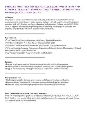 BARKLEY POST-TEST 2025-2026 ACTUAL EXAM 140 QUESTIONS AND CORRECT DETAILED ANSWERS (100% VERIFIED ANSWERS) with rationales |ALREADY GRADED A+