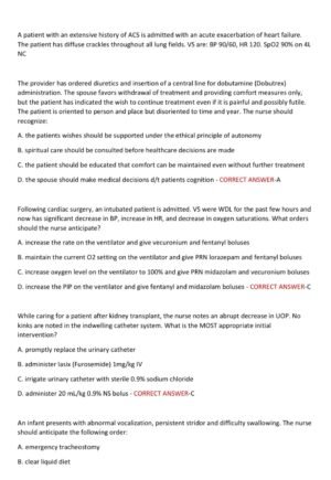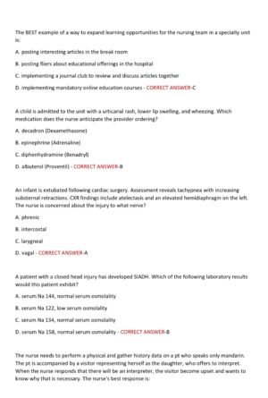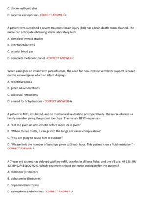 The CCRN (Pediatric) – AACN Critical Care Certification (2025–2026 Edition) provides 150 real exam-style questions with 100% correct answers, designed to help pediatric critical care nurses prepare effectively for their certification. Covering essential areas such as cardiovascular, respiratory, endocrine, multisystem, gastrointestinal, renal, neurological, psychosocial, and professional practice, this resource ensures comprehensive exam readiness. With verified answers, it reinforces clinical knowledge, sharpens decision-making, and boosts confidence, making it an excellent tool for success on the CCRN Pediatric certification exam.