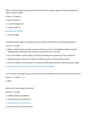 The Coaching Principles Final Exam Guide 2025–2026 is a fully updated resource designed to help students and professionals prepare for their final assessment in coaching principles. Featuring 170 exam-style questions, verified answers, and detailed rationales, this guide mirrors the structure and content of the actual exam while reinforcing key concepts in effective coaching and leadership.