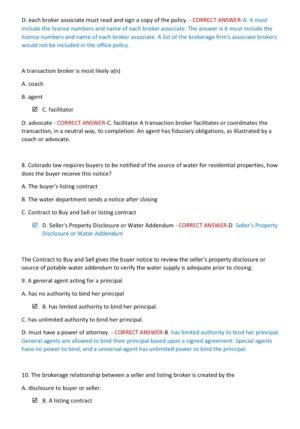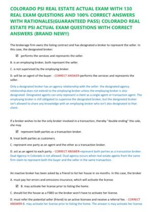 COLORADO PSI REAL ESTATE ACTUAL EXAM WITH 130 REAL EXAM QUESTIONS AND 100% CORRECT ANSWERS WITH RATIONALES(GUARANTEED PASS) COLORADO REAL ESTATE PSI ACTUAL EXAM QUESTIONS WITH CORRECT ANSWERS (BRAND NEW!!)