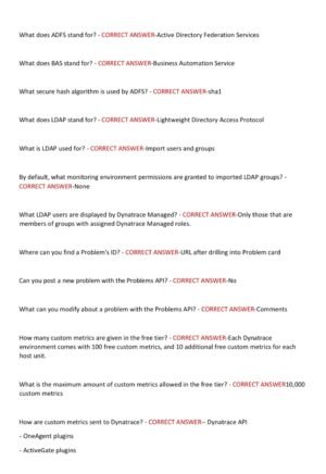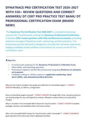 Be the first to review “DYNATRACE PRO CERTIFICATION TEST 2026-2027 WITH 550+ REVIEW QUESTIONS AND CORRECT ANSWERS/ DT CERT PRO PRACTICE TEST BANK/ DT PROFESSIONAL CERTIFICATION EXAM (BRAND NEW!)”