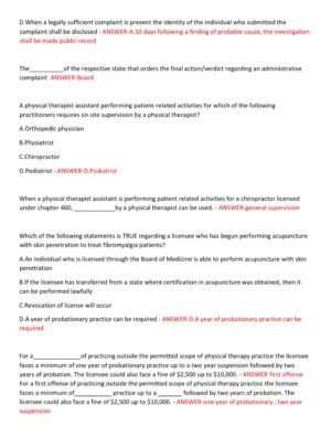 The Florida Dental Jurisprudence Exam 2025–2026 Study Guide provides a complete, verified collection of 200 exam-style questions with detailed correct answers, designed to help dental professionals confidently prepare for the Florida Dental Laws and Rules Examination. Fully updated for the latest 2025–2026 regulations, this A- graded study resource ensures accuracy, reliability, and comprehensive exam readiness for dental licensure success.