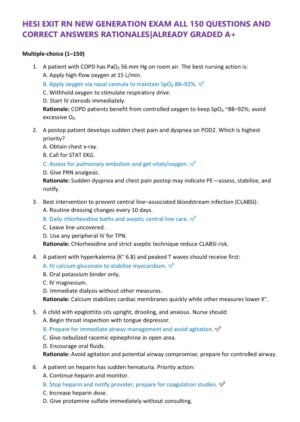 Be the first to review “HESI EXIT RN NEW GENERATION EXAM ALL 150 QUESTIONS AND CORRECT ANSWERS RATIONALES|ALREADY GRADED A+”