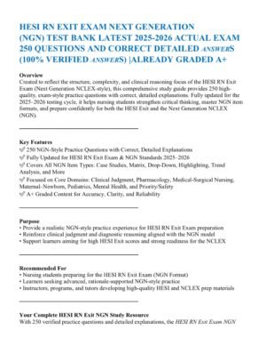 HESI RN EXIT EXAM NEXT GENERATION (NGN) TEST BANK LATEST 2025-2026 ACTUAL EXAM 250 QUESTIONS AND CORRECT DETAILED ANSWERS (100% VERIFIED ANSWERS) |ALREADY GRADED A+