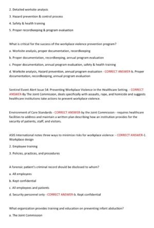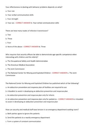 The IAHSS Basic Officer Certification Actual Exam (Latest 2025–2026 Edition) provides 200 real exam questions with 100% correct and verified answers, making it the ultimate prep tool for healthcare security professionals. This updated guide covers all essential domains, including safety procedures, emergency response, workplace violence prevention, access control, patient and staff safety, and professional ethics. Structured to reflect the actual certification exam, it helps learners build confidence, strengthen knowledge, and ensure success on test day. A reliable resource for mastering the IAHSS Basic Training and advancing in healthcare security with guaranteed first-attempt success.