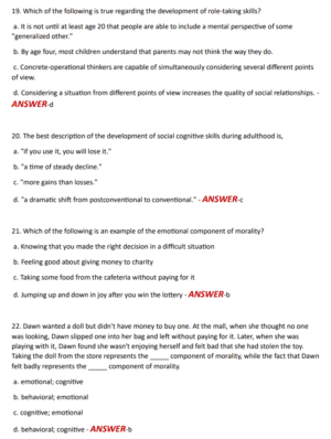 Lifespan Testbank Social cognition and moral development 180 QUESTIONS AND CORRECT ANSWERS 2025 LATEST VERSION/ALREADY GRADED A+