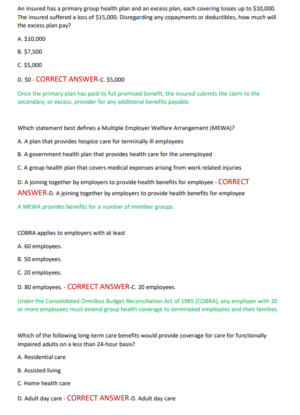 This comprehensive Louisiana Life and Health Insurance Exam prep guide for 2025–2026 includes 300 real-world practice questions with verified correct answers, covering all key areas required by the Louisiana Department of Insurance. Topics include life insurance policies, health coverage types, group insurance, annuities, policy provisions, state regulations, and ethical practices. Perfect for candidates seeking to pass their state licensing exam with confidence, this A+ graded resource is updated for current standards and built for first-time success.