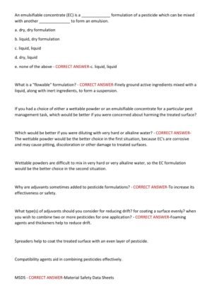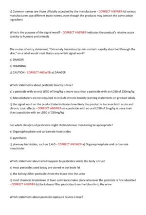 The MDARD Michigan Core Pesticide Applicator Exam Prep (2025/2026) provides 400+ carefully selected questions with well-elaborated, verified answers to help applicators master pesticide laws, safety, handling, storage, and environmental protection. This newly revised, top-rated version has been graded A+, ensuring it matches the most up-to-date Michigan Department of Agriculture & Rural Development (MDARD) exam standards. Designed for first-attempt success, it is an essential resource for anyone pursuing their Michigan pesticide applicator license