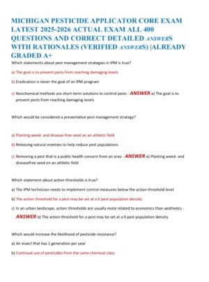 MICHIGAN PESTICIDE APPLICATOR CORE EXAM LATEST 2025-2026 ACTUAL EXAM ALL 400 QUESTIONS AND CORRECT DETAILED ANSWERS WITH RATIONALES (VERIFIED ANSWERS) |ALREADY GRADED A+