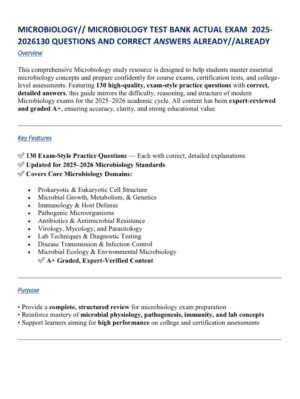 MICROBIOLOGY// MICROBIOLOGY TEST BANK ACTUAL EXAM 2025-2026130 QUESTIONS AND CORRECT ANSWERS ALREADY//ALREADY