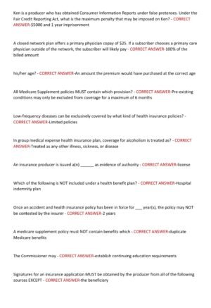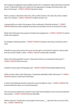 The New Jersey Health and Accident Insurance Exam Prep 2025–2026 is a complete and updated study resource created to help candidates succeed on their state licensing exam. It includes 300+ actual exam-style questions with 100% correct verified answers, ensuring accuracy and reliability. Key topics covered are health insurance policies, accident and disability coverage, state regulations, policy provisions, group insurance, and ethical practices. Aligned with the latest 2025–2026 exam standards, this guide equips learners with the knowledge, confidence, and test-taking strategies needed to pass the NJ Health and Accident Insurance Exam on the first attempt.