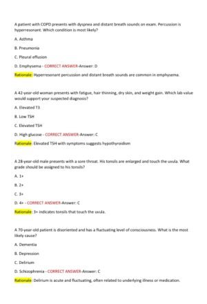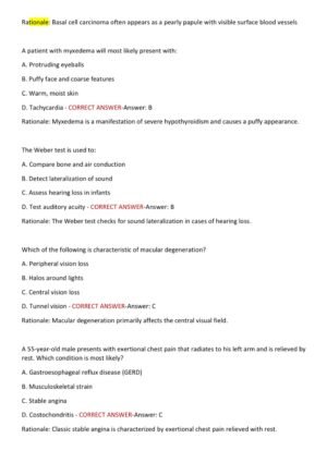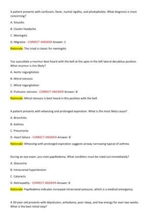 The NR 509 Midterm Exam Prep 2025/2026 provides the latest set of 200 actual exam questions with 100% correct verified answers, already graded A+ for guaranteed accuracy. This comprehensive resource covers all essential topics in Advanced Physical Assessment, ensuring nursing students are well-prepared and confident for their midterm. Updated to reflect the latest NR 509 exam format, it is the perfect tool for mastering course concepts and achieving success on the first attemp