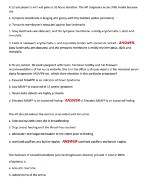 This document contains the actual NUR 504 3P APEA Exam, featuring 200 complete questions with 100% verified and correct answers. It covers all core areas of Advanced Physical Assessment, Pathophysiology, and Pharmacology (3P)—including diagnostic reasoning, medication management, differential diagnosis, disease processes, and treatment protocols. Structured to mirror the APEA exam format, this resource is perfect for last-minute review or in-depth study. Graded A+, it’s all you need to confidently pass your 3P APEA exam.