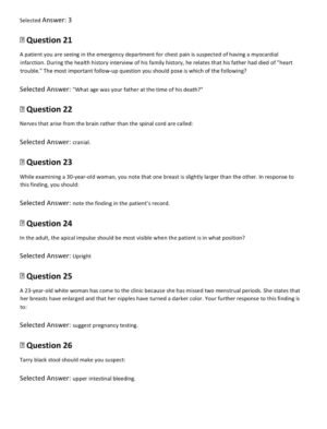 This document contains 100 real NUR6512 Final Exam questions with correct answers, updated for the 2025–2026 academic cycle. It covers essential advanced health assessment topics, including comprehensive physical examinations, diagnostic reasoning, interpretation of clinical findings, differential diagnoses, and evidence-based care planning. Graded A+ and reflecting over a 90% pass rate, this resource is designed for accurate and effective preparation for the NUR6512 final exam.