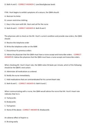 The Qualified Medication Aide (QMA) Exam Prep 2025–2026 includes 70 actual exam-style questions with correct verified answers, designed to help candidates review safe medication administration, dosage calculations, and patient care responsibilities. This graded A+ resource provides reliable practice to ensure exam success and build confidence