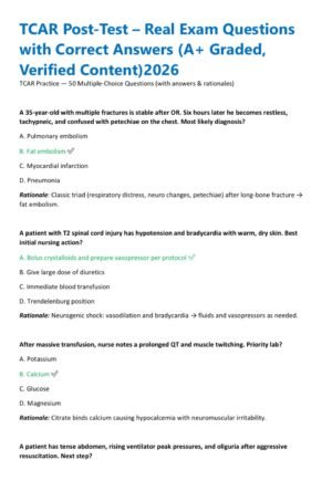 TCAR Post-Test – Real Exam Questions with Correct Answers (A+ Graded, Verified Content)2026
