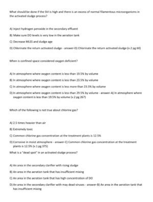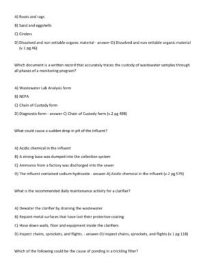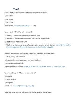 The Wastewater Treatment Operator (Test 2 & 3) Certification Exam 2025–2026 provides a verified collection of 160 real, exam-style questions with 100% correct answers, designed to mirror the difficulty and scope of actual certification exams. Updated to align with the latest 2025–2026 operator competency standards, this A+ graded study resource equips wastewater professionals with the knowledge and confidence to excel in intermediate and advanced licensing exams.
