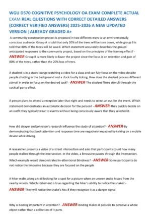 WGU D570 COGNITIVE PSYCHOLOGY OA EXAM COMPLETE ACTUAL EXAM REAL QUESTIONS WITH CORRECT DETAILED ANSWERS (CORRECT VERIFIED ANSWERS) 2025-2026 A NEW UPDATED VERSION |ALREADY GRADED A+