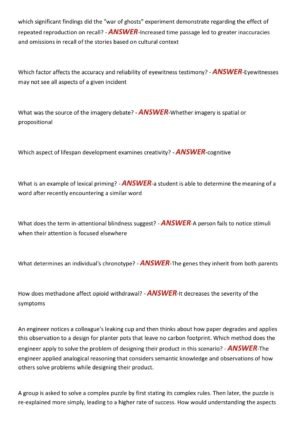 his updated study guide for WGU D570: Cognitive Psychology provides a complete set of real exam-style questions with verified, correct answers to support effective preparation for the OA exam. Aligned with the 2025–2026 assessment standards, it offers clear, detailed explanations to strengthen understanding of key cognitive psychology concepts. Designed for accuracy and reliability, this resource helps students build confidence and achieve top results on their exam.